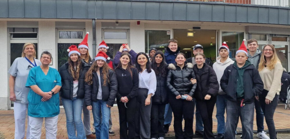 Am Mittwoch den 10.12.25 waren wir Schüler und Schülerinnen der Klasse 8E im HEWAG Seniorenstift zu Besuch. Um den Bewohnern der Seniorenresidenz eine Freude zu bereiten, haben wir Weihnachtskarten verteilt, welche die Schüler und Schülerinnen der Gesamtschule Hiesfeld für sie geschrieben haben. Gemeinsam haben wir Weihnachtslieder gesungen, Geschichten vorgelesen und zum Abschluss zusammen heißen Kakao getrunken. Es war sehr schön zu sehen, wie sich die Bewohner über die Karten gefreut haben. Es war ein sehr schöner Tag.