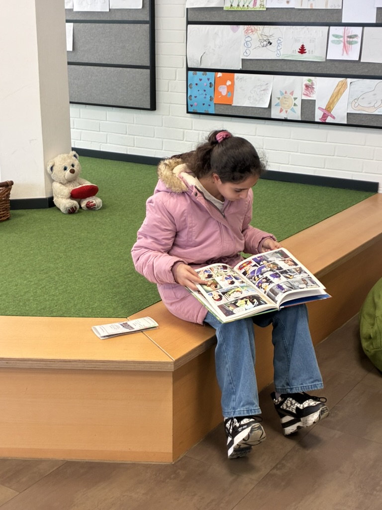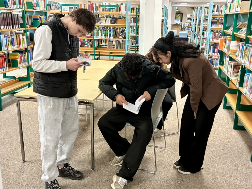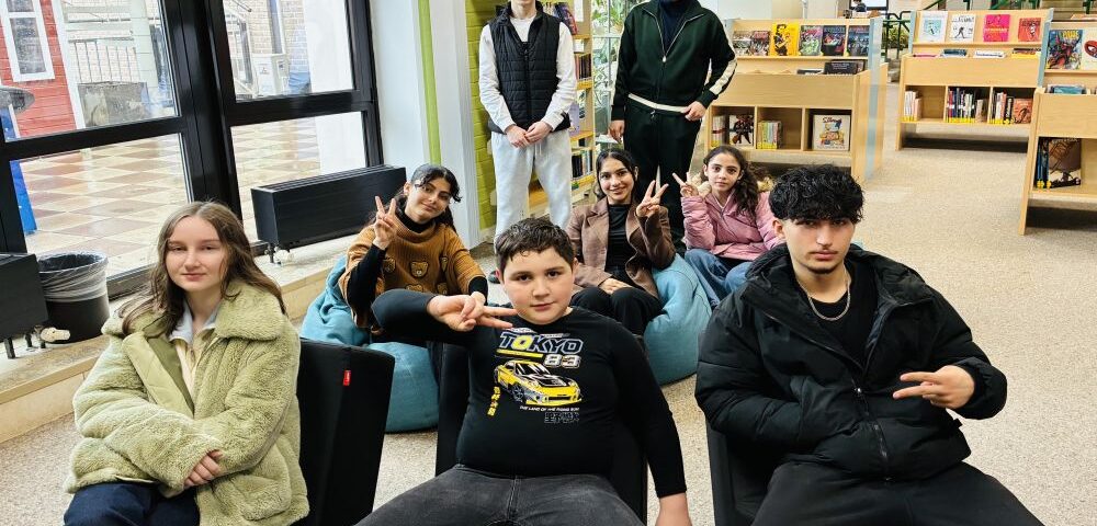 20. April 2026Unsere DAZ-Gruppe war kürzlich gemeinsam in Dinslaken unterwegs und erlebte dort einen abwechslungsreichen und lehrreichen Tag. Ein besonderer Programmpunkt war die Führung durch die Stadtbibliothek. Hier erhielten die Schülerinnen und Schüler spannende Einblicke in die verschiedenen Lernorte, lernten, wie man gezielt nach Büchern sucht, und entdeckten außerdem das Angebot an Gesellschaftsspielen.